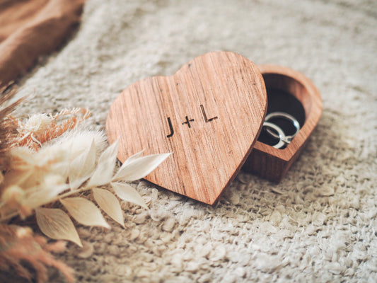 Heart Shaped Ring Box (Oak Wood)