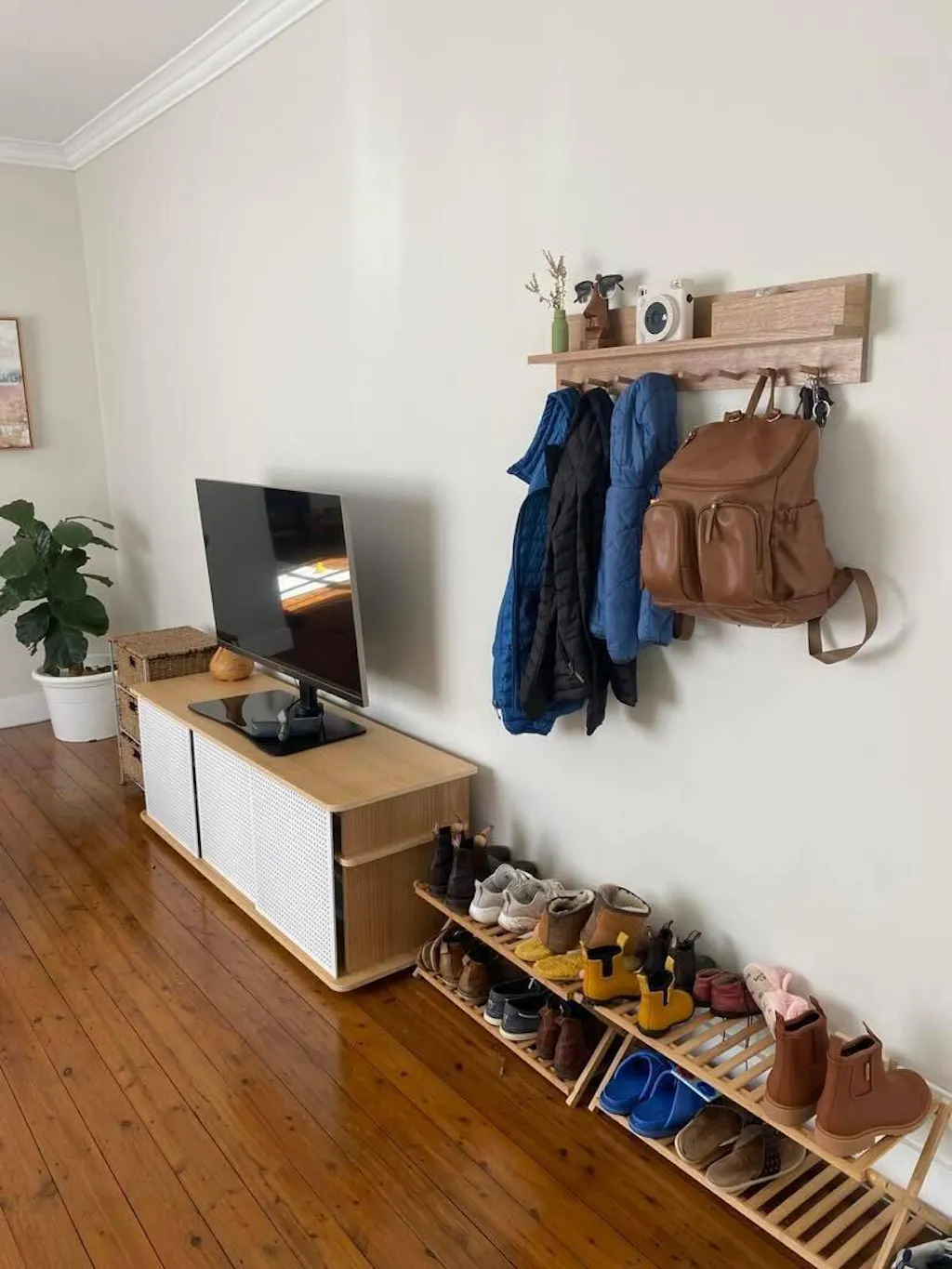 1. The most secure way to hang our shelves/ entryway organisers is to attach a screw into a stud (pieces of wood behind a drywall that acts as the wall's frame)