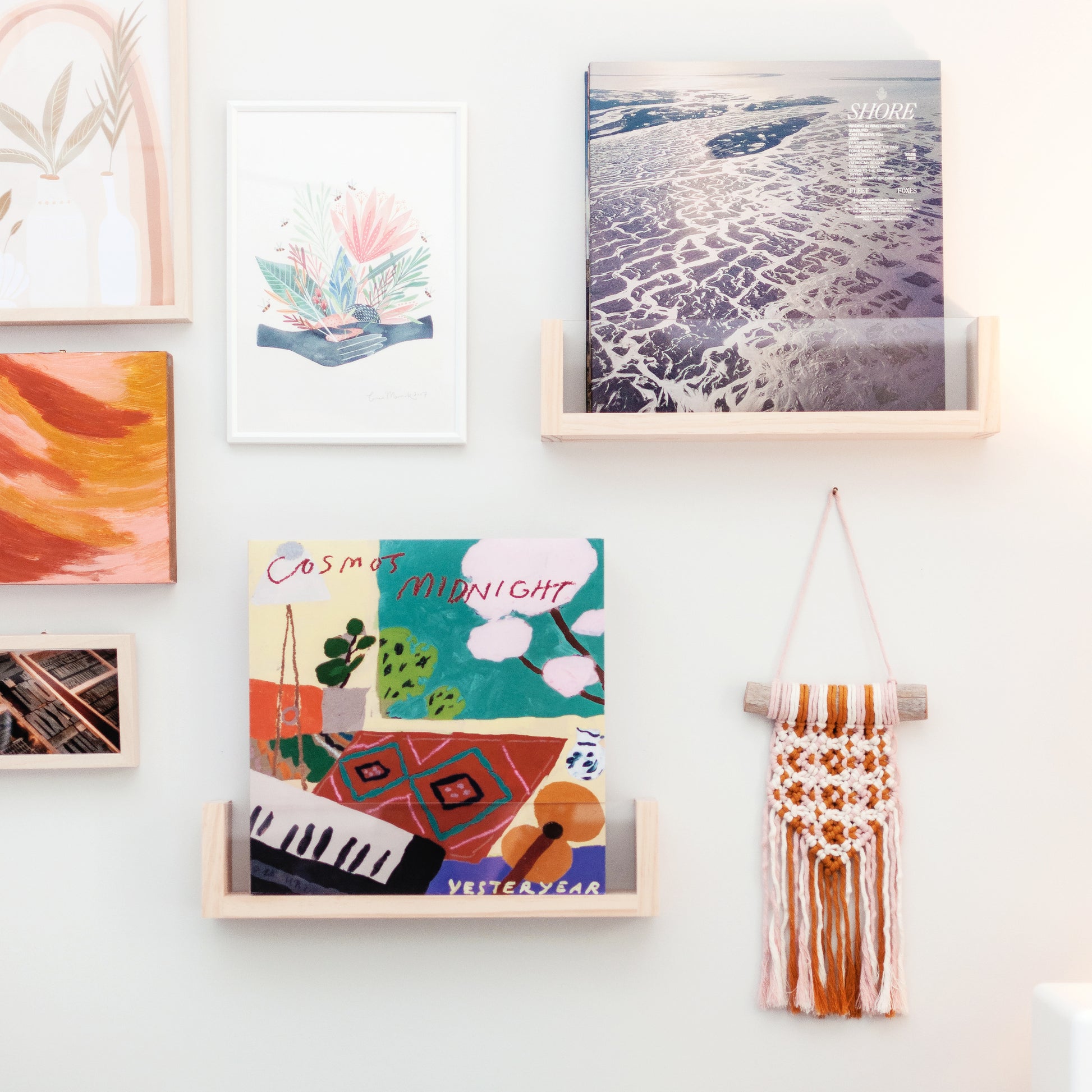 The product will come in separate pieces - the wooden shelf and the acrylic front. Remove the protective cover from the acrylic and insert it into the slots on the shelf.
