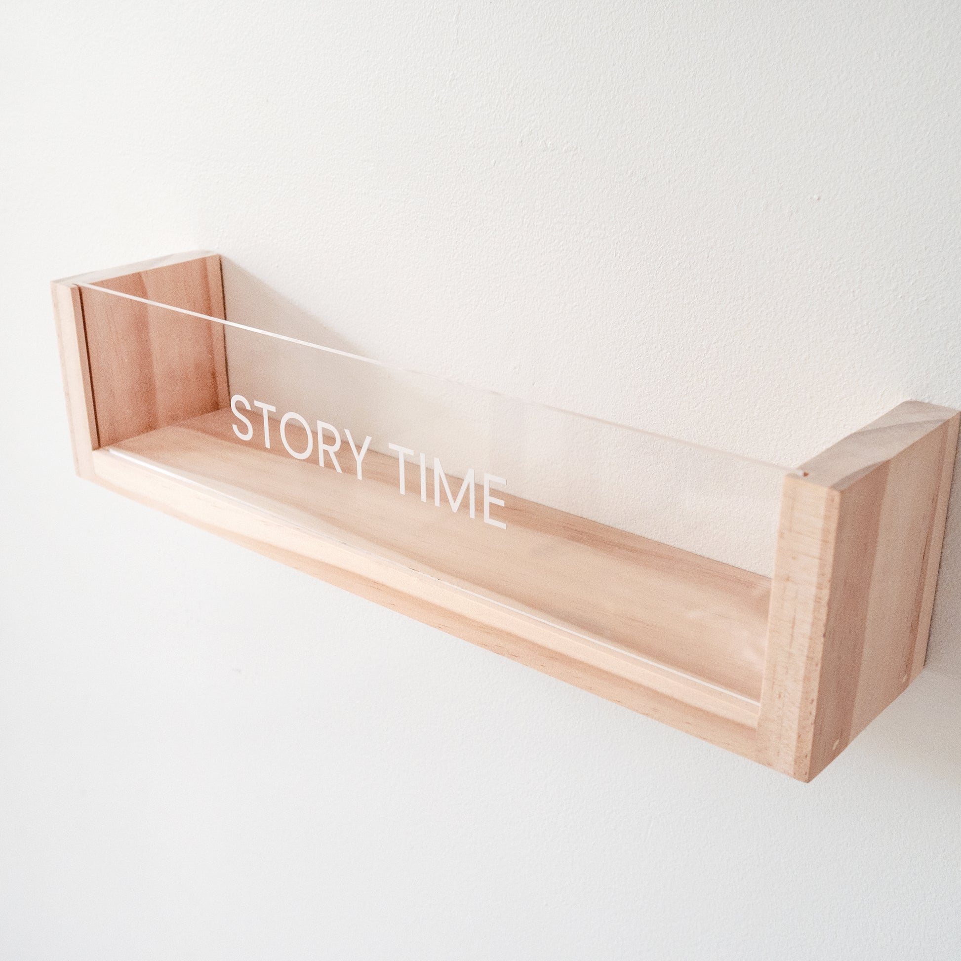 Personalise your shelf by etching text onto the acrylic front. Only a plain font is available, and the font size will be determined by the length of the text. The etching process leaves a precise, permanent mark on the clear acrylic.